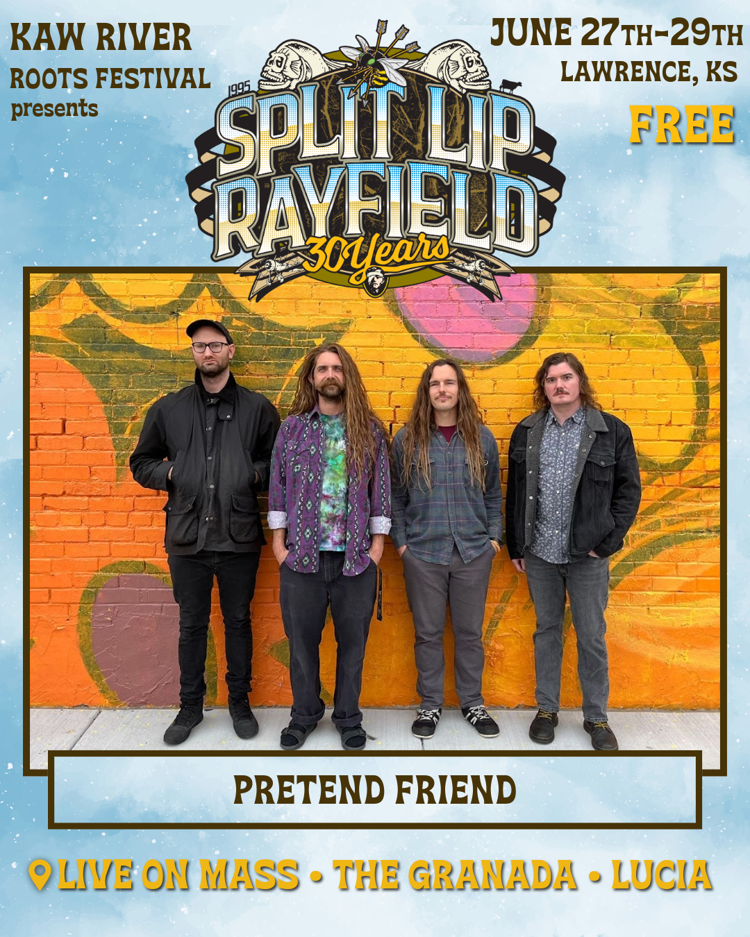 Pretend Friend is a nationally touring progressive bluegrass and folk band based in Wichita, Kansas. Focused on creating original music, Pretend Friend melds captivating lyrics and soulful melodies into timeless songs. The blending of traditional familiarity with improvised jams, driving bluegrass, vocal harmonies, and anthemic choruses only begins to encompass the soundscape created by the genre-bending acoustic group. Catch them Friday night at the Granada Theater.