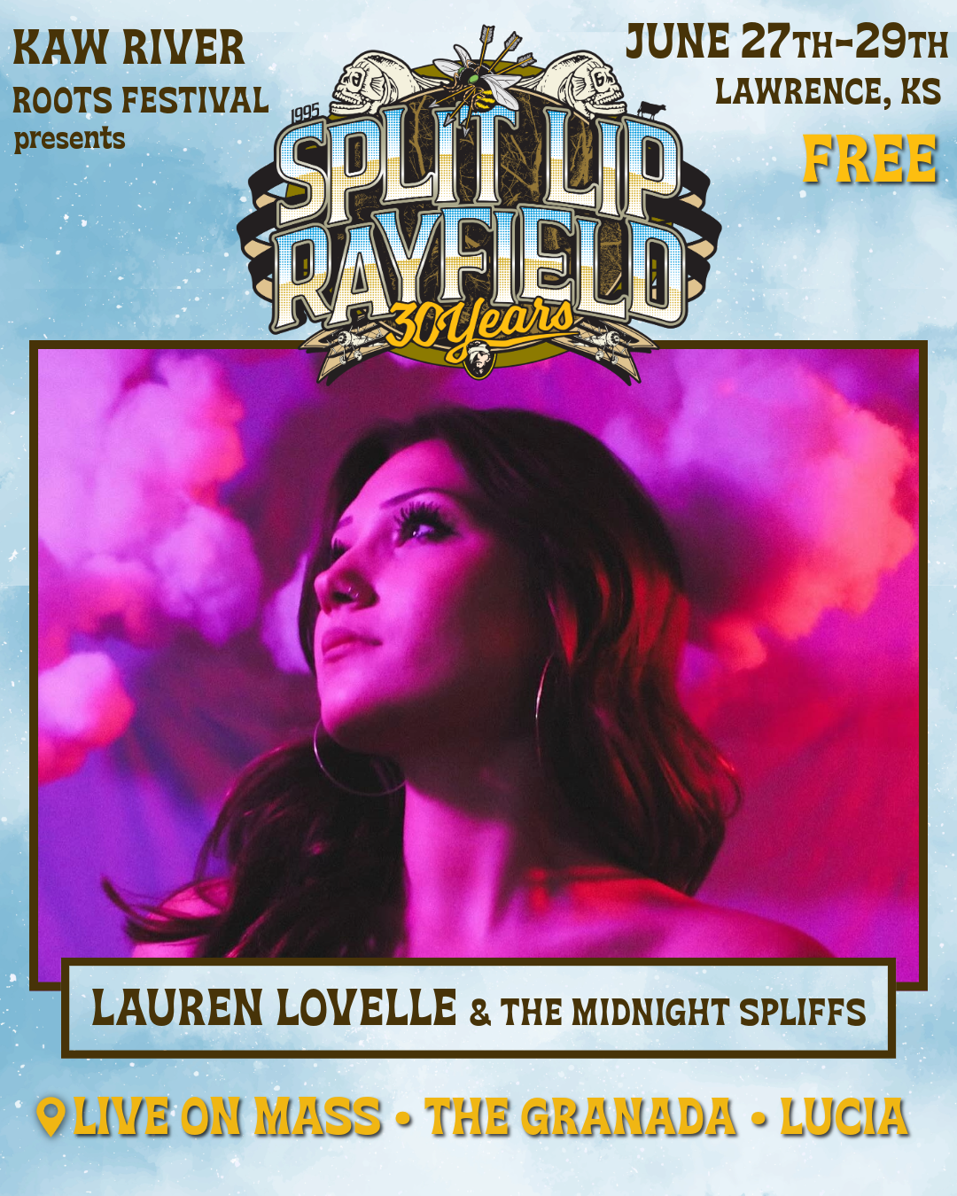 Lauren Lovelle & The Midnight Spliffs are a vibrant Kansas City-based country group known for their lively performances and authentic sound. Fronted by the dynamic Lauren Lovelle, the band blends classic country with modern influences, creating a unique and infectious musical style. Their energetic shows and heartfelt lyrics have earned them a dedicated following in the local music scene and beyond. Burn one down with them on Mass St. Saturday evening.
